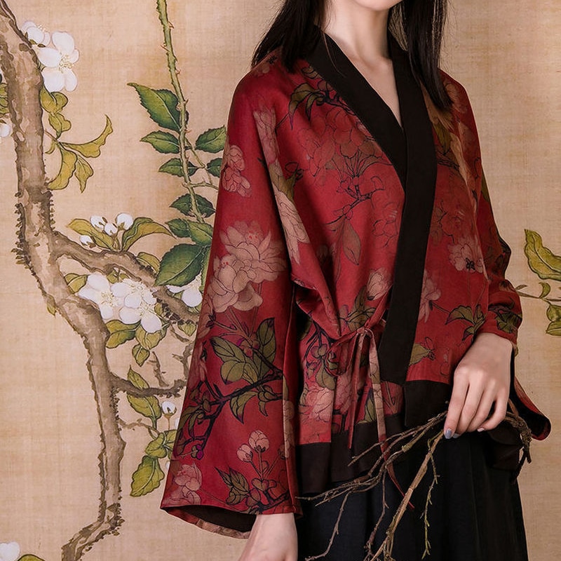 Cardigan de Style chinois rétro Hanfu imprimé, manteau traditionnel Robe Kimono Rouge Embrace the art of loungewear with our exquisite silk robes and women's kimono collection. check out our kimono rouge selection for the very best in unique or custom, handmade pieces from our women's clothing shops. our women’s kimono robes draw inspiration from the various styles of traditional chinese brushwork, capturing the aesthetics. Fall in love with your favorite. Robe Kimono Rouge.