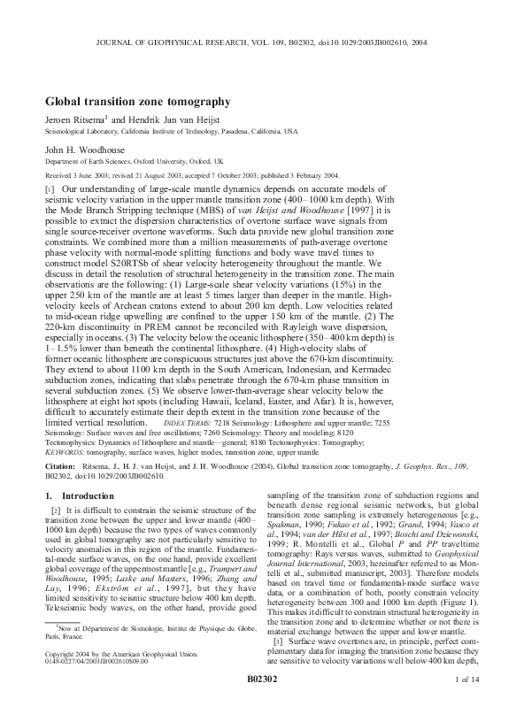 (PDF) Global transition zone tomography Jeroen Ritsema Academia.edu