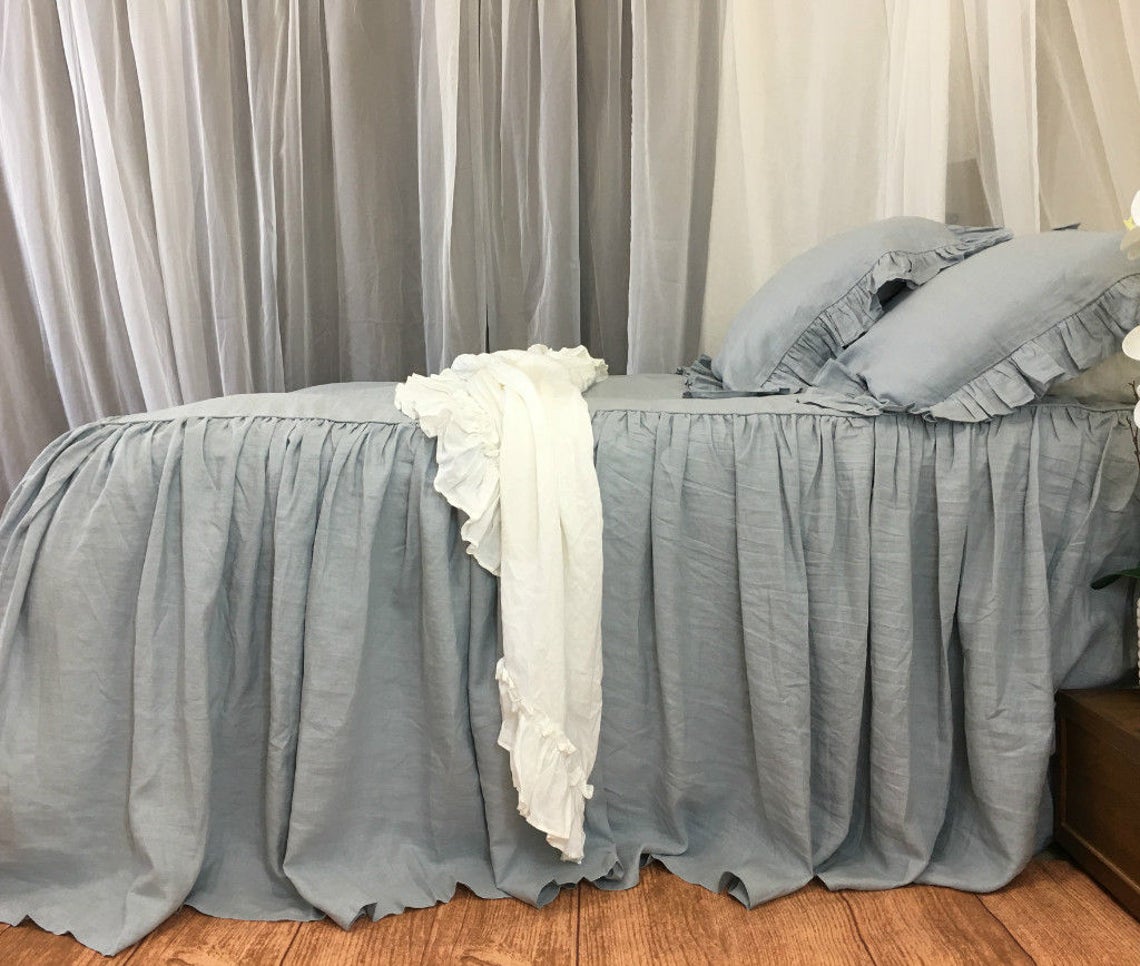 Duck Egg Blue Bedspread Blue Ruffle Bedding Linen Bedding Etsy