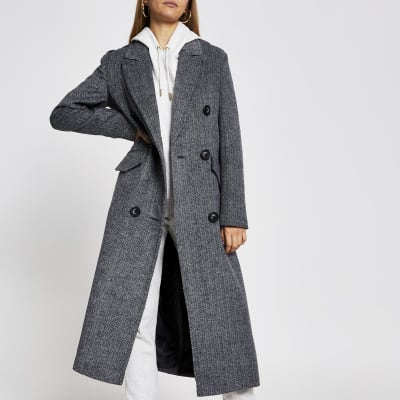 Grey long line double breasted coat River Island