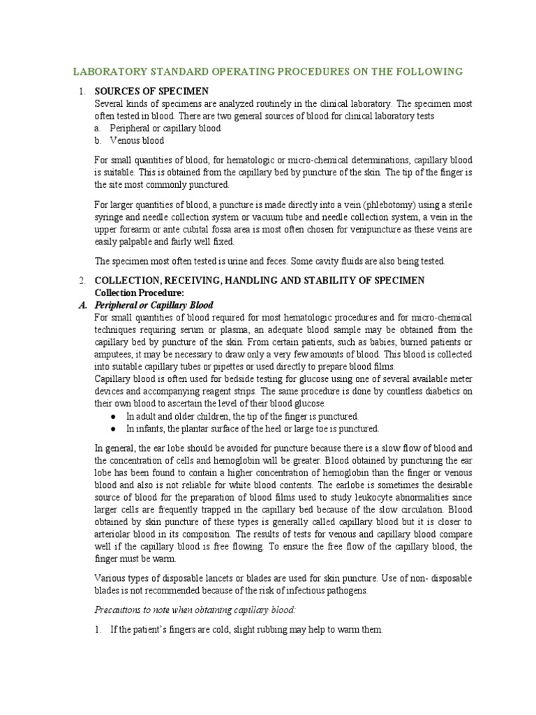 Laboratory Standard Operating Procedures On The Followin1 PDF