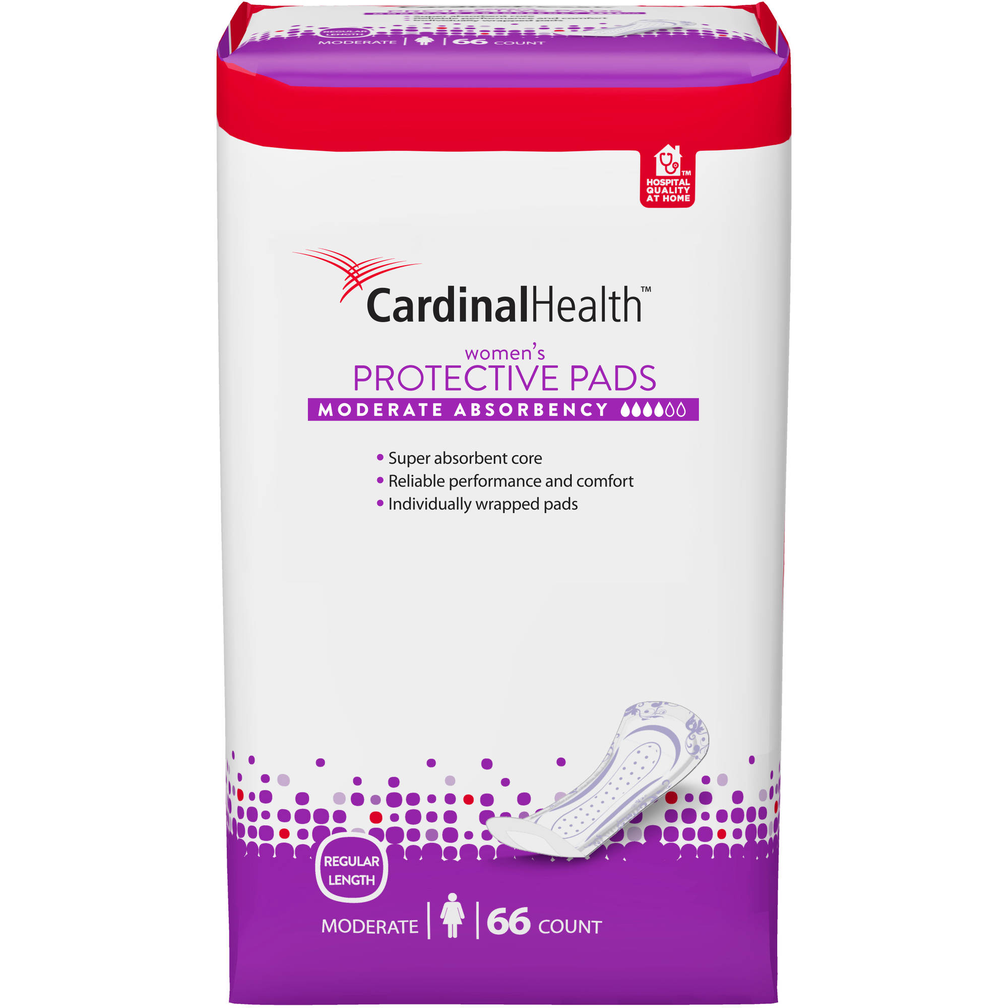 Cardinal Health Moderate Absorbency Women's Protective Pads, Regular Length, 66 Ct
