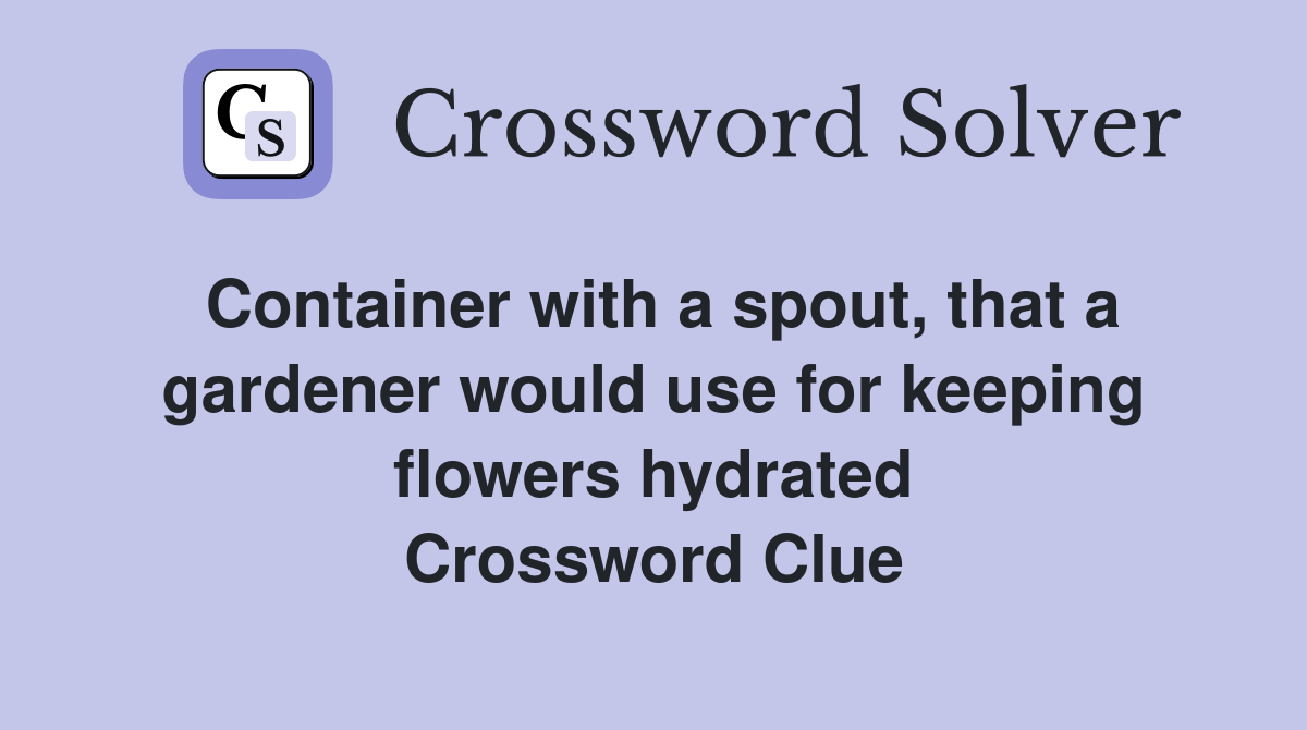 Container with a spout, that a gardener would use for keeping flowers Flowers Are Used For Sprays Crossword Clue The crossword solver finds answers to. The crossword solver found 30 answers to flowers are used for sprays (5), 5 letters crossword clue. The crossword solver found 30 answers to flowers are used for sprays, 5 letters crossword clue. I believe the answer is: Today's crossword puzzle clue is a cryptic one: Its fragrant flowers are used in perfumery. The. Flowers Are Used For Sprays Crossword Clue.