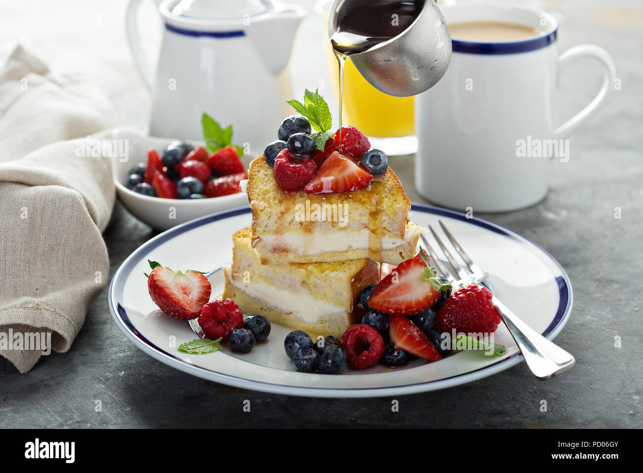Baked french toast with cream cheese filling Stock Photo Alamy