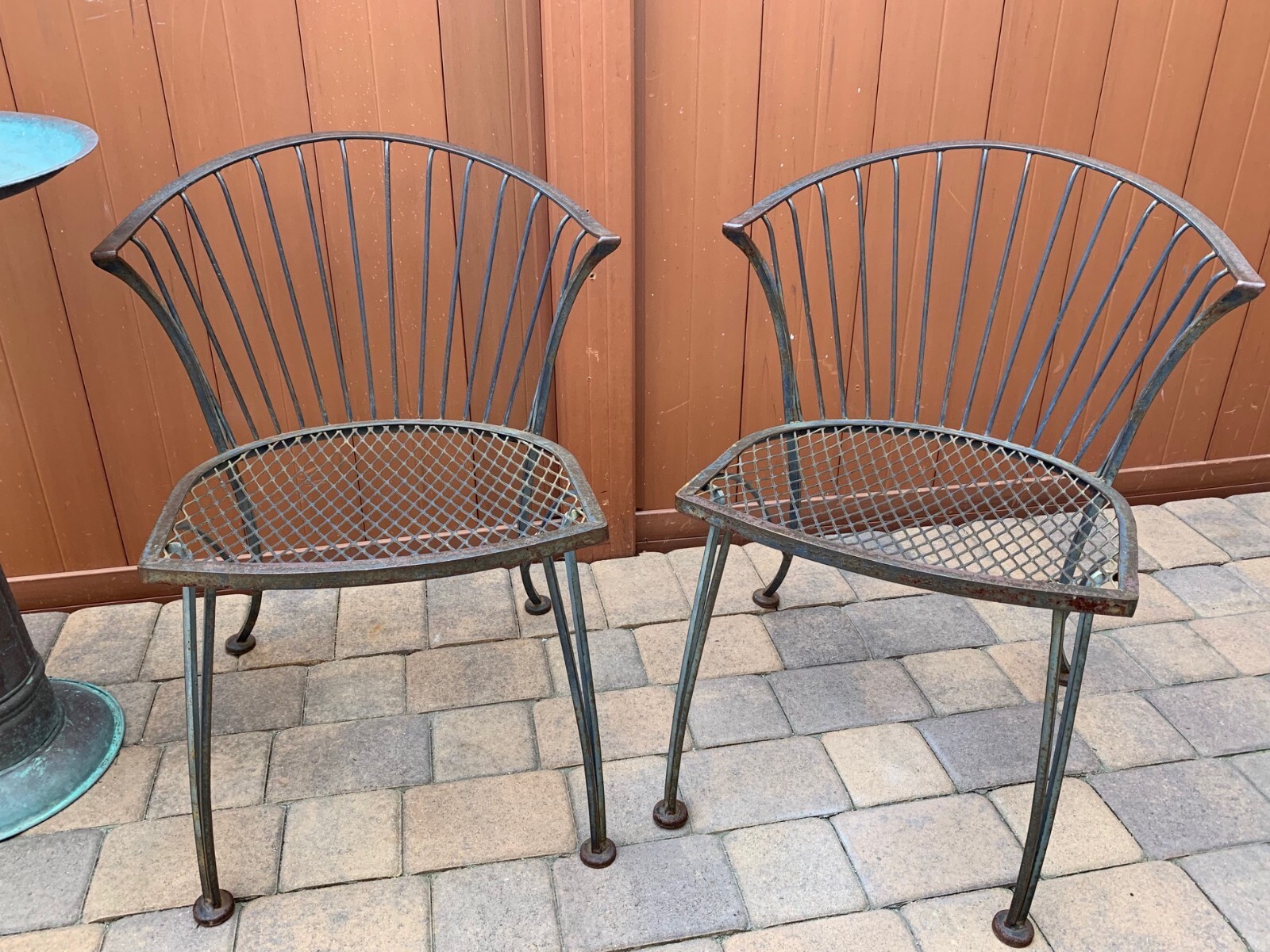 Two / Pair Vintage Mid Century Woodard Pinecrest Wrought Iron Chairs eBay