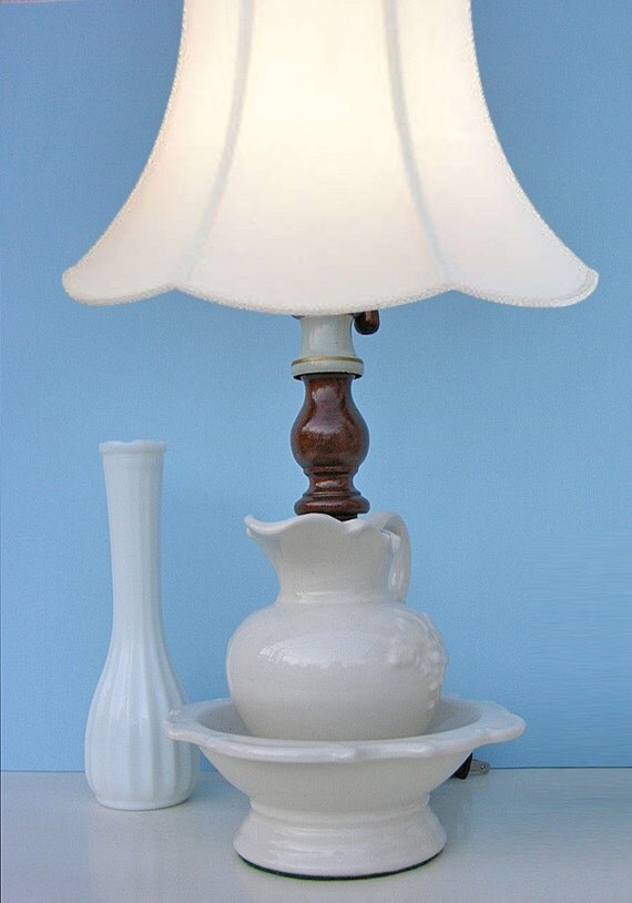 Vintage White Pitcher and Bowl Lamp Base by FishboneDeco on Etsy