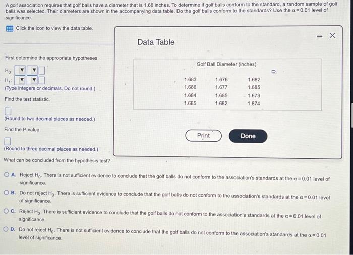 Solved A golf association requires that golf balls have a