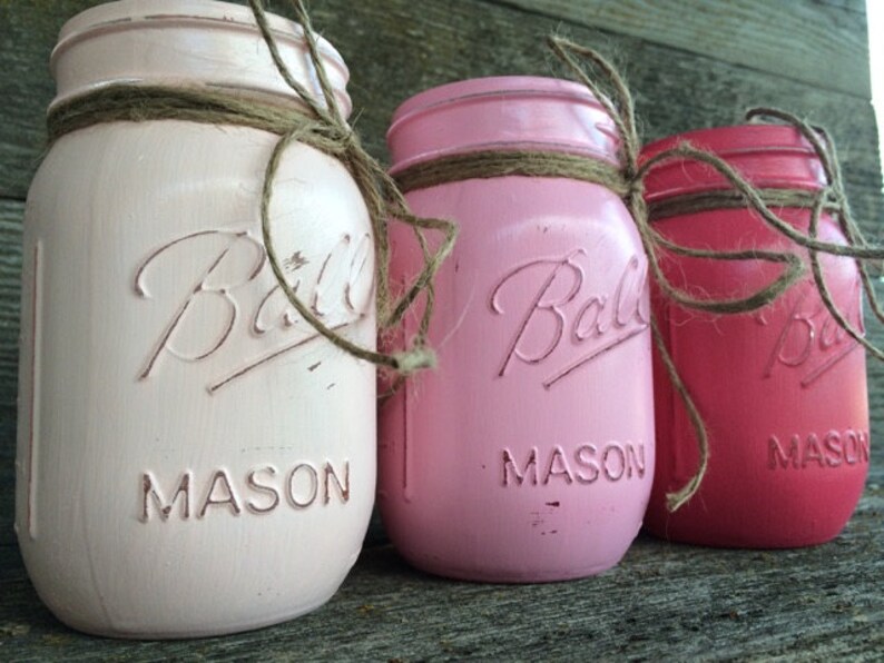 Items similar to Set of Three Distressed Mason JarsRose, Ivory and Mason Jars Set Pink Check each product page for other buying. — mimorou 10 pack 16 oz pink mason canning jars with lids regular mouth pint vintage colored ball cans for. drastar mason jar with lids and straws, 24 oz mason jar with handle, pink mason jar coffee cup, iced coffee glasses,. wide mouth mason jars, set of 3, blush pink. Mason Jars Set Pink.