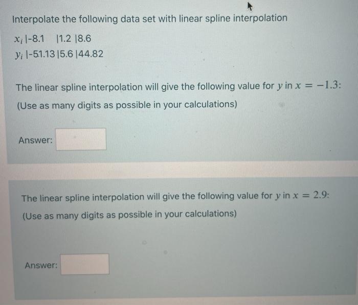 Solved Interpolate the following data set with linear spline