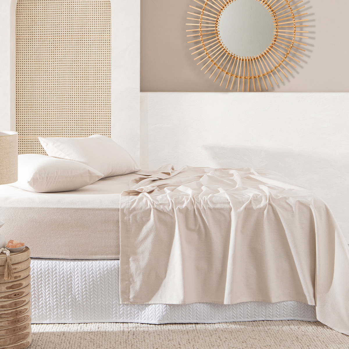 Essentials Natural Flannelette Sheet Set Natural Single Bed Flannelette