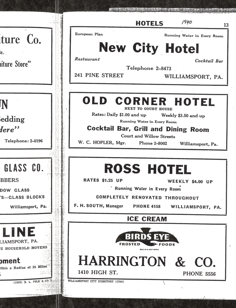 History Old Corner Hotel Williamsport, PA