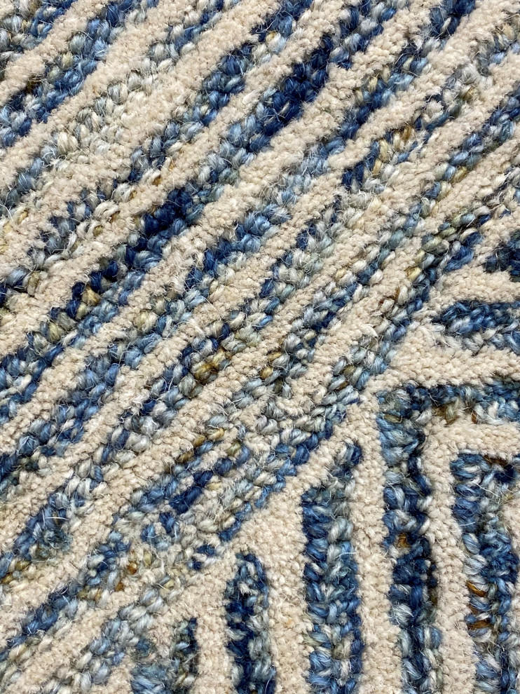 Blue and Cream Intricate Geometric Round Rug Contemporary Area Rugs