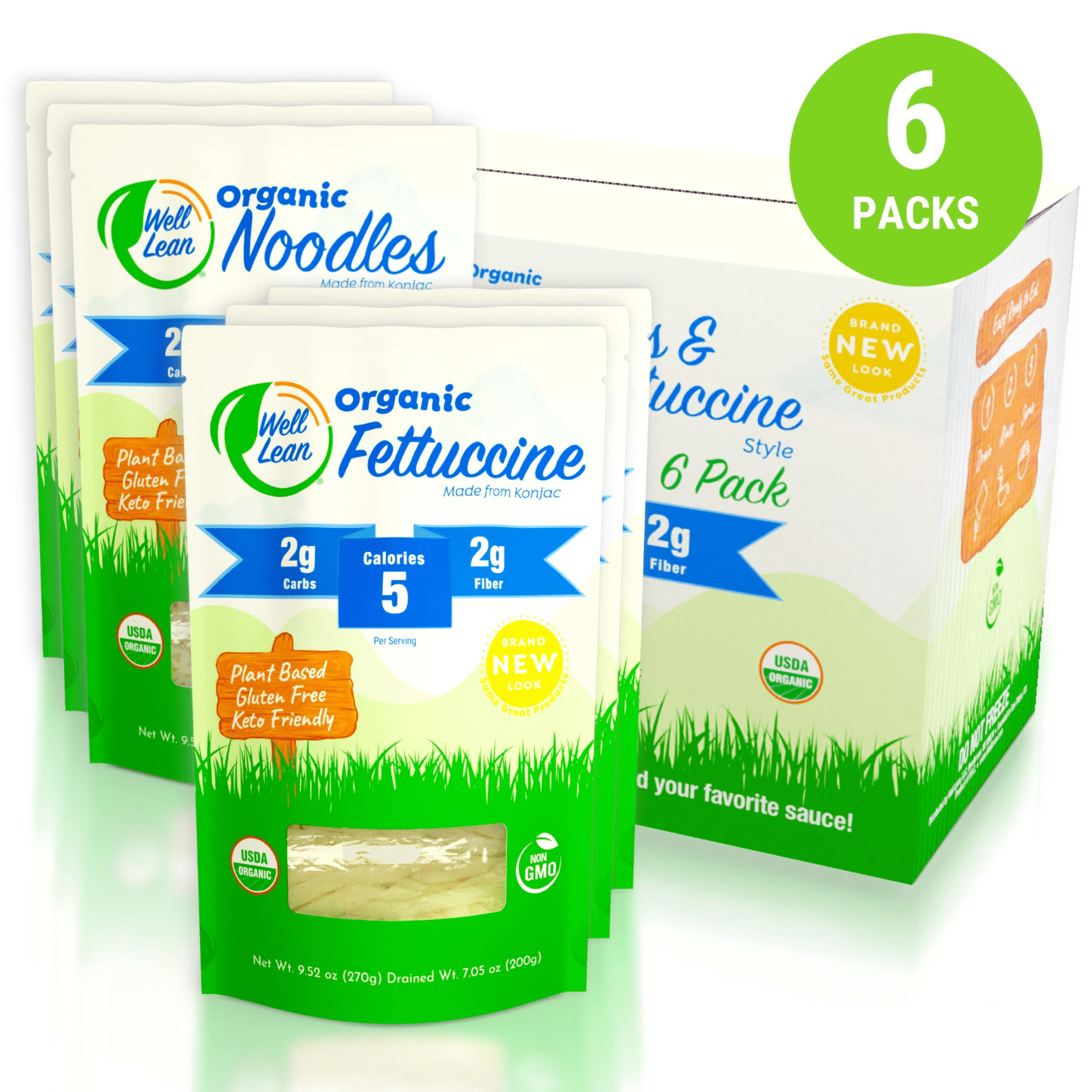 Organic Well Lean Variety, 6 Pack, Premium Shirataki Konjac Pasta, Keto