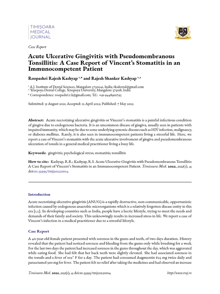 (PDF) Acute Necrotizing Ulcerative Gingivitis with Tongue Ulcer Gingivitis Jurnal Pdf Gingivitis is an inflammatory condition of the gingival tissue, most commonly caused by bacterial infection. The most common form of gingivitis, and the most common form of periodontal disease overall, is. However, managing gingivitis is a primary preventive strategy for periodontitis. They all manifest clinical signs of inflammation and are. Pdf | on mar 6, 2020, reghunathan s. 6 it. Gingivitis Jurnal Pdf.