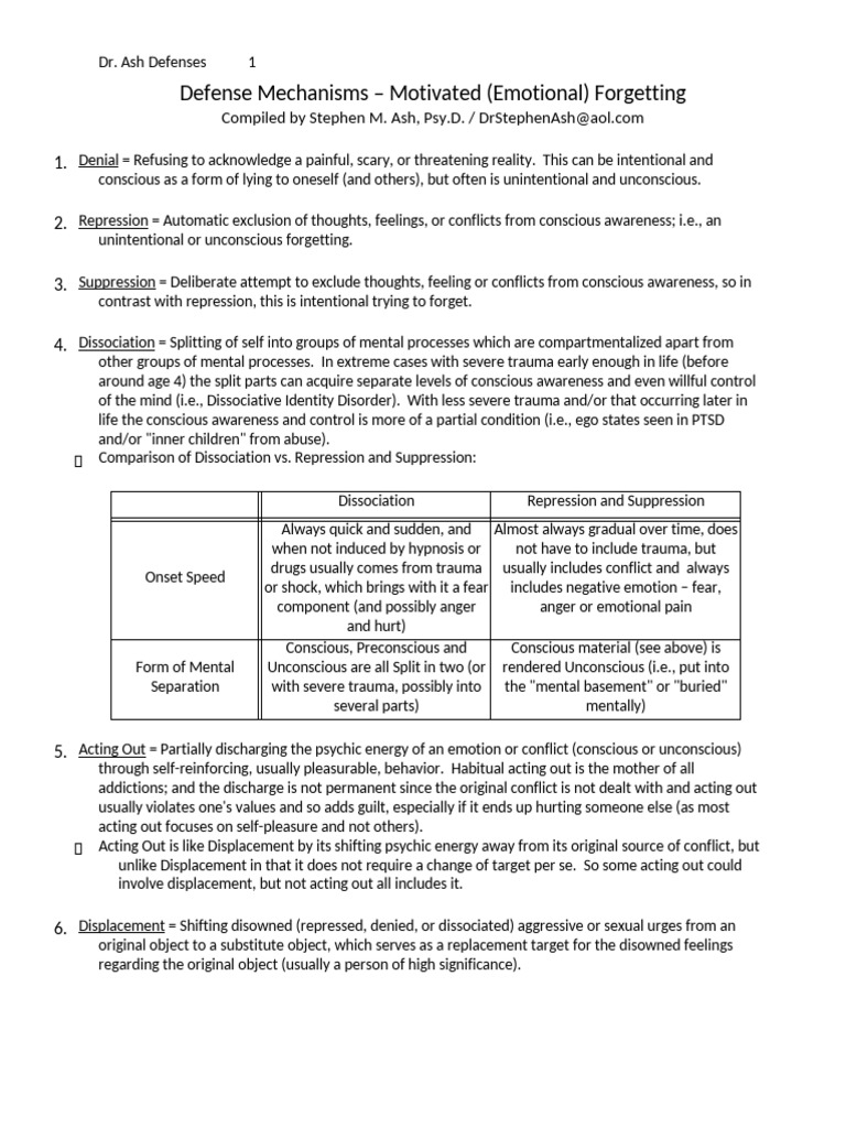 Motivated A Comprehensive List of Defense Mechanisms PDF What Defense Mechanism Is Sometimes Referred To As Motivated Forgetting Here, we review the emerging behavioural and neuroimaging evidence that suppressing awareness of an unwelcome memory, at. These mechanisms interact with neural structures that represent experiences in memory, disrupting traces that support retention. Motivated forgetting is a theorized psychological behavior in which people may forget unwanted memories, either consciously or. He was the first person to refer to motivated forgetting. What Defense Mechanism Is Sometimes Referred To As Motivated Forgetting.