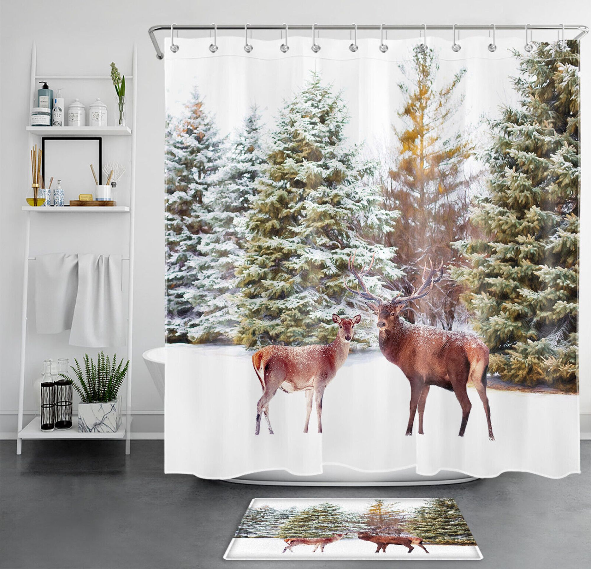 WhiteTailed Deer Winter Wildlife Shower Curtain Set Hyper Realistic Sy Walmart Wildlife Shower Curtains a rustic shower curtain can add a touch of charm and character to your bathroom decor. buy highland cow shower curtain 60wx72l inch farmhouse bull animal cattles wooden board plank western wildlife cute funny. Buy products such as joocar fish shower curtain for kids. buy ruiyc rustic nursery woodland animals shower curtain for kids cute wildlife country. Walmart Wildlife Shower Curtains.