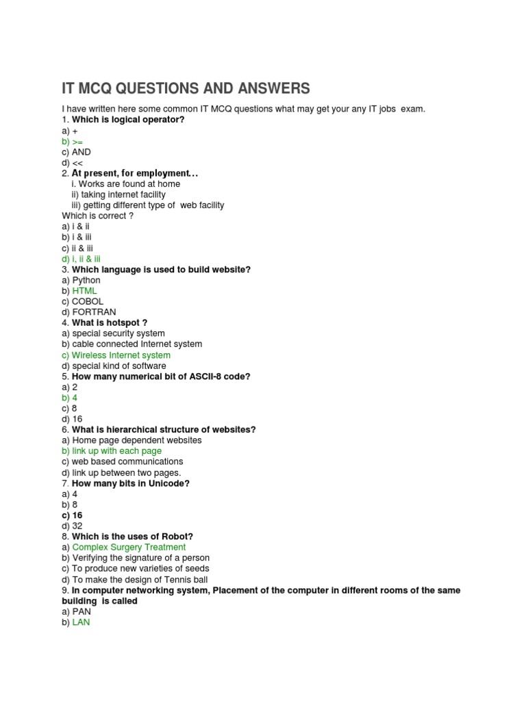 It Mcq Questions and Answers
