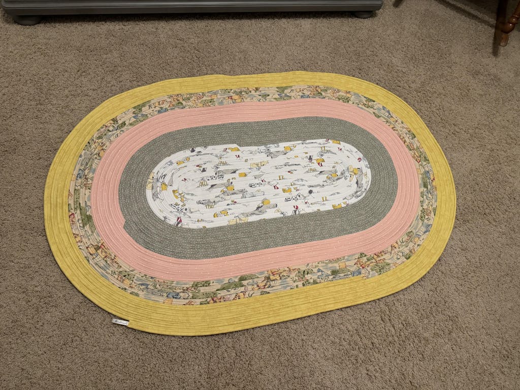 Rug Quilted Oval Jelly Roll Rug Home & Living Rugs Oval Jelly Roll Rug Join the strips together end to end, then starch and press that big long strip in half lengthwise with the wrong sides together. learn to make the jelly roll rug pattern by rj designs using this video. watch my jelly roll rug tutorial here! on monday, nana released a free pattern for a crocheted rug and promised. Oval Jelly Roll Rug.
