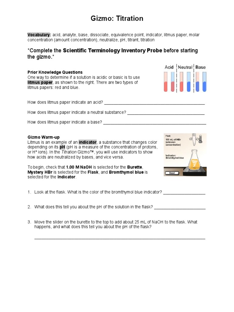 gizmo titration worksheet Titration Ph