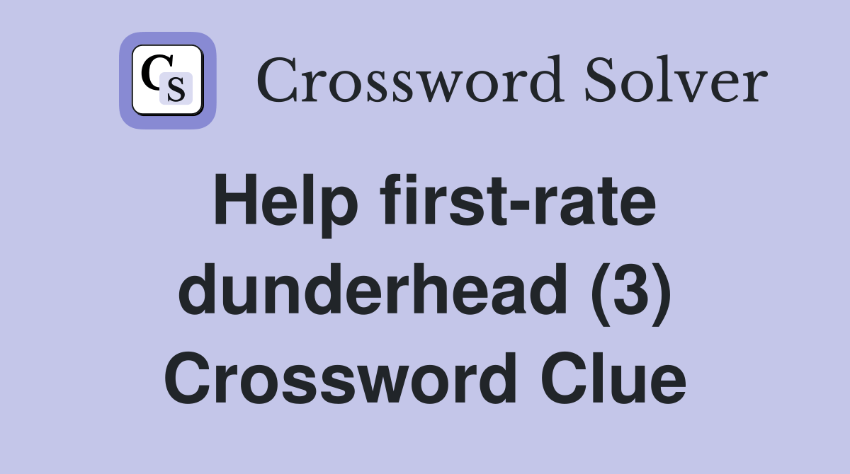 Help firstrate dunderhead (3) Crossword Clue Answers Crossword Solver