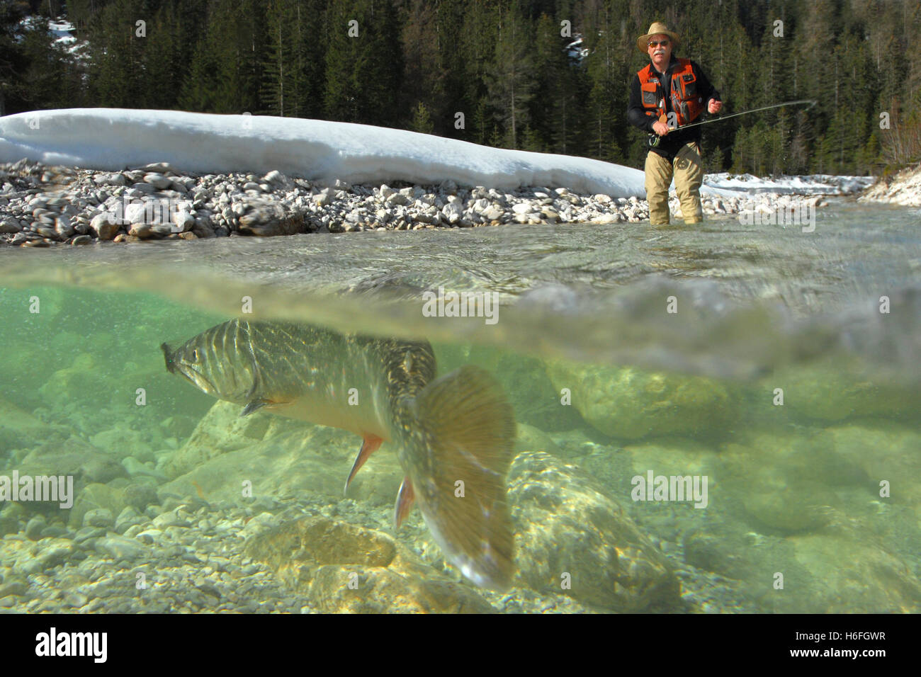 Fly fishing, catching a char, Leutasch, Tyrol, Austria Stock Photo Alamy