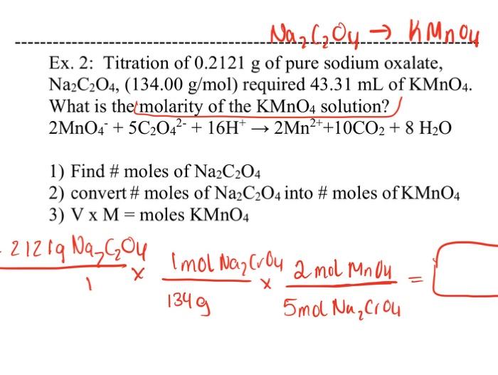Solved Nazl204 KMnO4 Ex. 2 Titration of 0.2121 g of pure