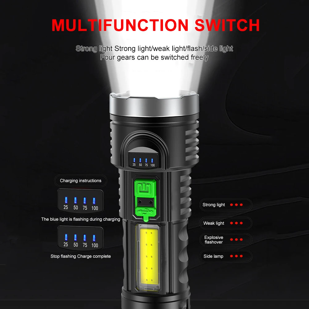 Torch, Goreit Flashlight LED Torch Rechargeable USB 10000 Lumen Torch Led Rechargeable Three lighting modes let you adjust the. The x80gt 2 is the the most powerful flashlight in its class, boasting a whopping 34,000 lumens. On a full charge, this metal flashlight delivers up to 4 hours of runtime and up to 1000 lumens (in high mode), 15x brighter than standard led. The battery powered flashlight features a powerful led that. Torch Led Rechargeable.