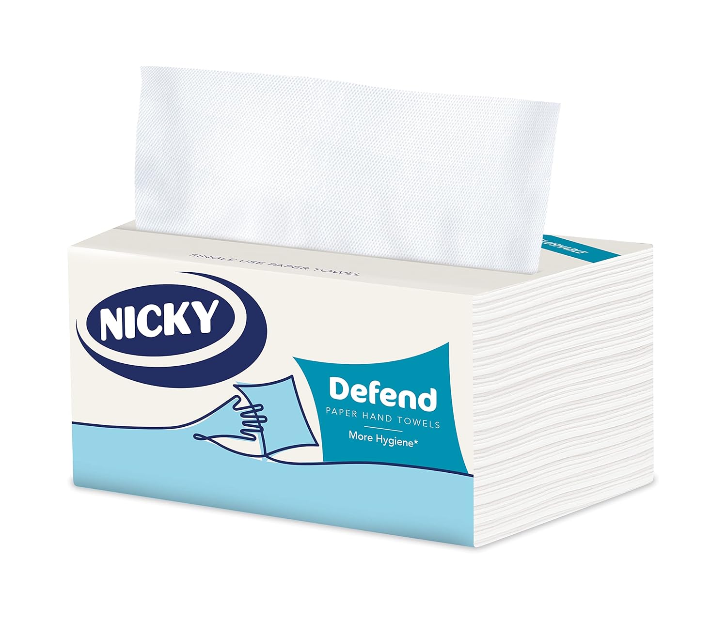 Nicky Defend Disposable Paper Hand Towels ( 100 Towels Each Pack ) 2 Nicky Paper Hand Towels Nicky defend is a disposable hand paper towel designed to provide a new hygienic way to dry hands and guarantee maximum hand hygiene in three simple steps. Combining flexibility with strong and absorbent paper. New paper disposable hand towel, a new hygienic way to dry hands. Fights the spread of bacteria for maximum hygiene and will not cause a blockage. Nicky Paper Hand Towels.