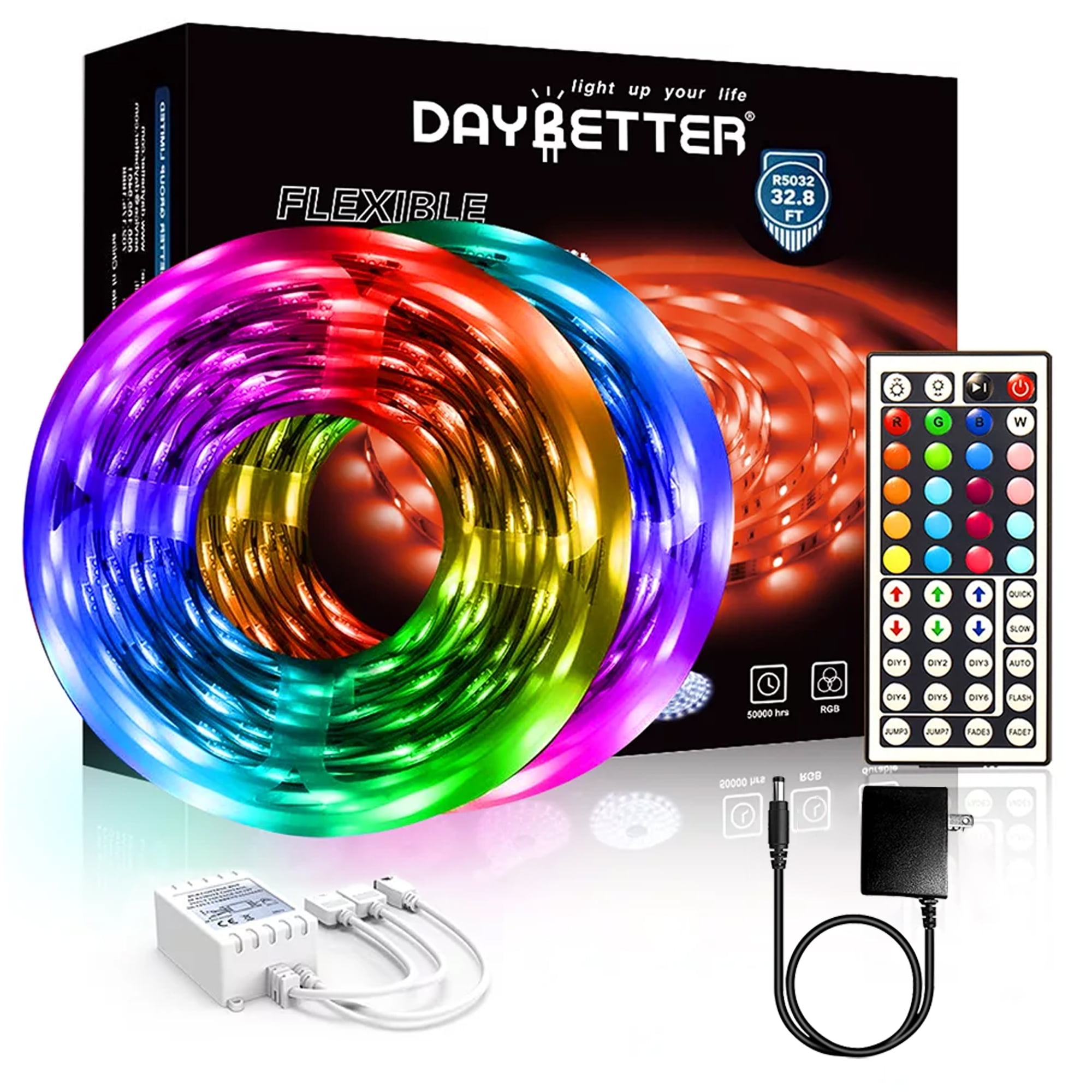 DAYBETTER LED Strip Light 32.8ft 5050RGB Color Changing,with 44 Key