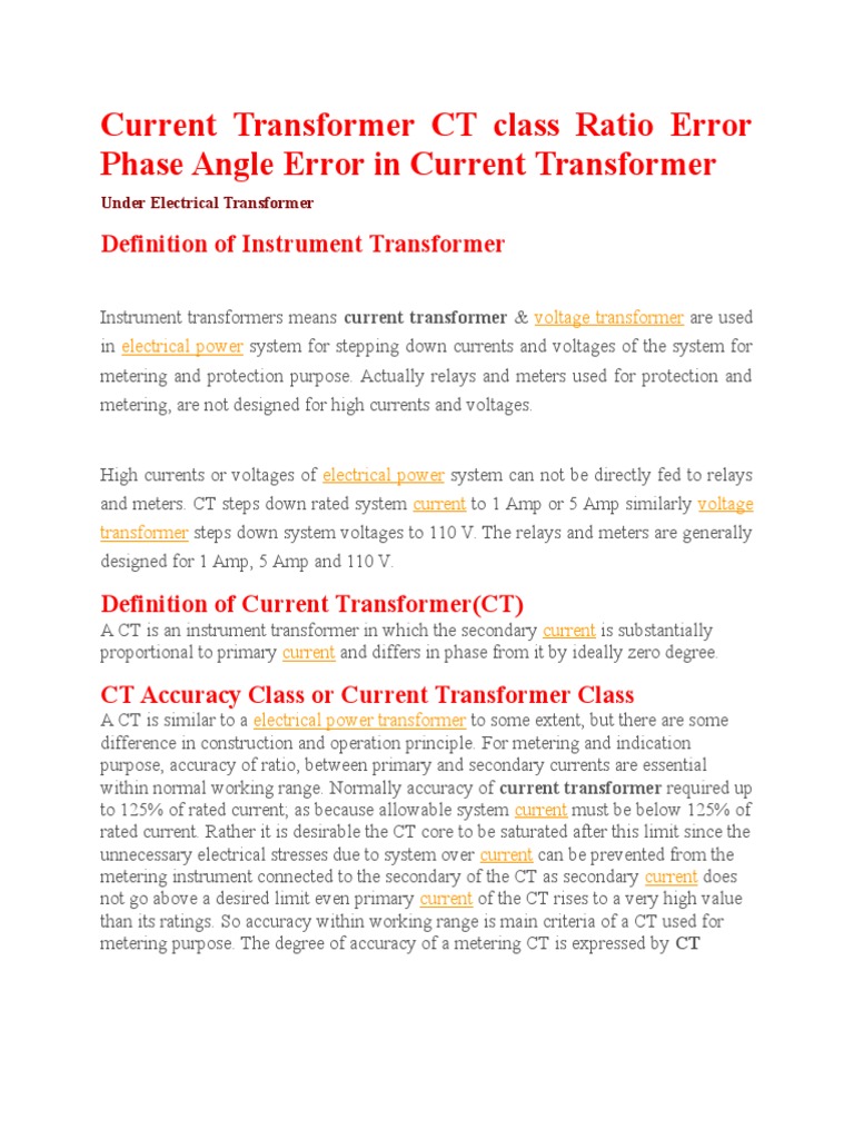Current Transformer CT Class Ratio Error Phase Angle Error in Current