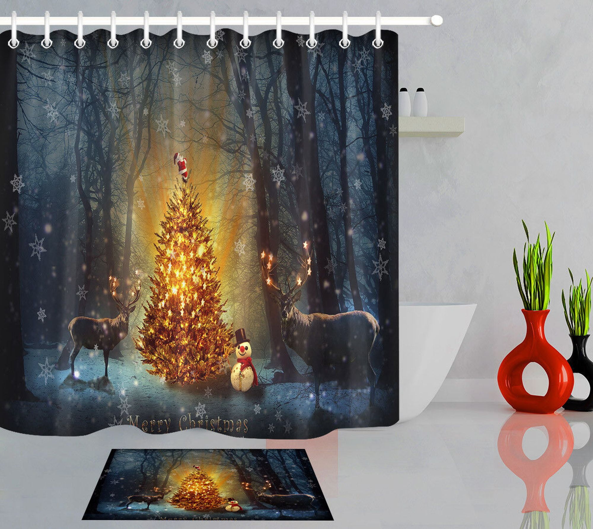 SUMGAR Christmas Tree Shower Curtain Santa Deer Holiday Shower Curtains Christmas Tree Shower Curtains Check out our christmas tree shower curtain selection for the very best in unique or custom, handmade pieces from our shower curtains & rings shops. Fill your bathroom with holiday spirit with the watercolor christmas tree shower curtain featuring a bright watercolor christmas. Crafted with meticulous attention to detail, this shower curtain features a delightful merry christmas trees & gifts. Christmas Tree Shower Curtains.