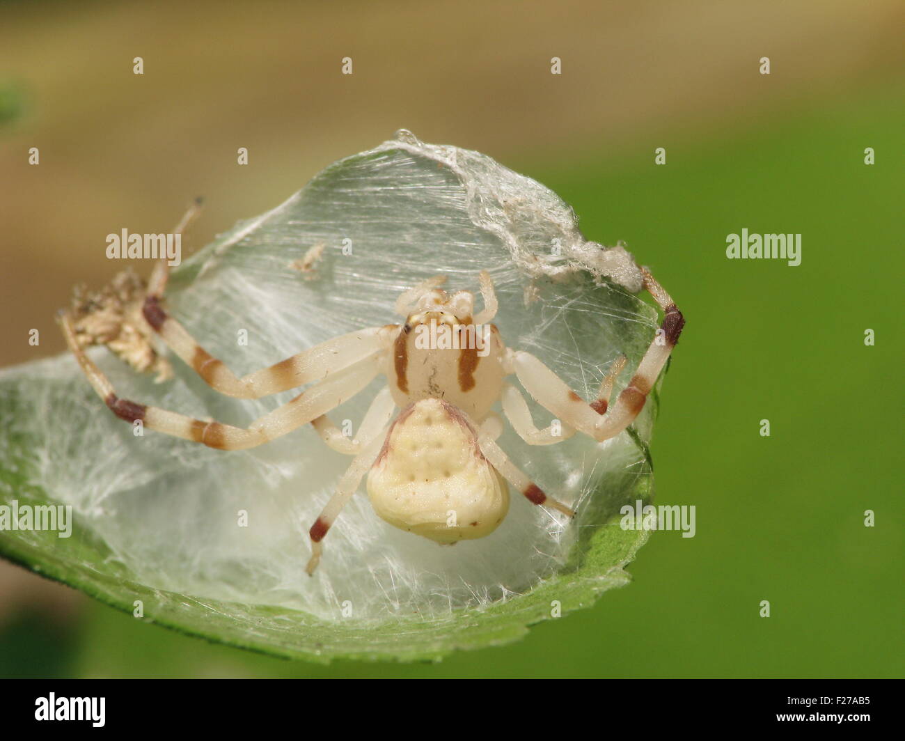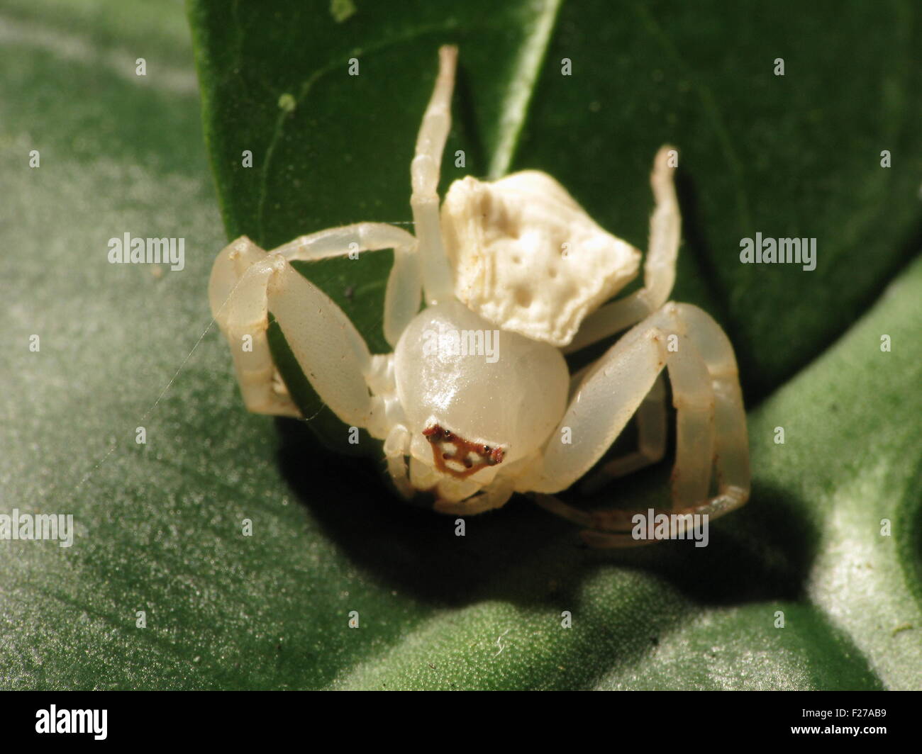 White Crab Spider on Green Leaf Stock Photo Image of asia, nature Crab Spider White Primarily daytime feeders, these spiders are easiest to spot outdoors between april and september. The flower crab spider has a globular abdomen, sometimes with spots or lines. They can change their colour to match their surroundings but often appear white. The diet and environment of the creature affect its overall body color. Their bodies are broad and squat, their front. Crab Spider White.