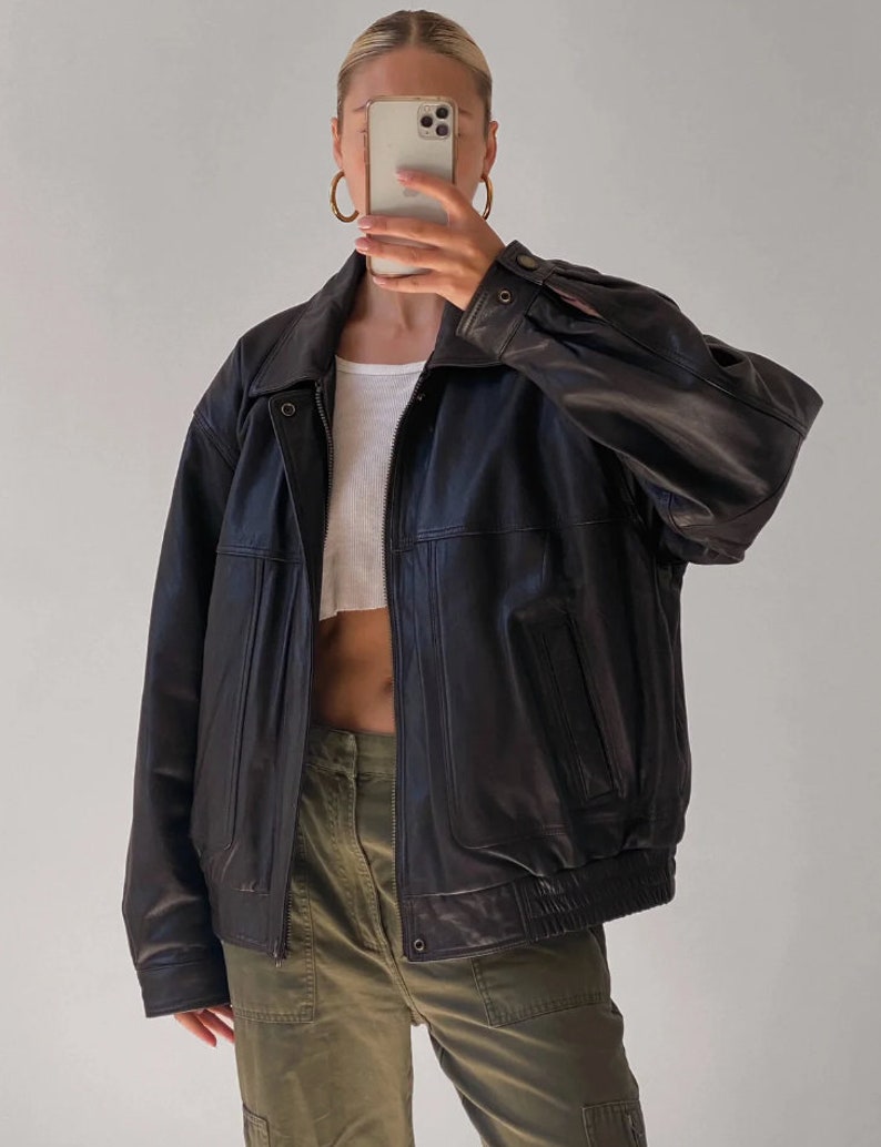 Women Real Genuine Oversized Black Leather Jacket Ladies Etsy Where To Buy Oversized Black Leather Jacket Next day delivery and free returns to store. Explore the epitome of fashion with our women's oversized leather jackets and coats collection. Shop asos edition oversized real leather borg lined jacket in black at asos. London based producers of fine bespoke nappa leather jackets for men and women in a variety of colors and sizes. No worries, we’ll always bring. Where To Buy Oversized Black Leather Jacket.