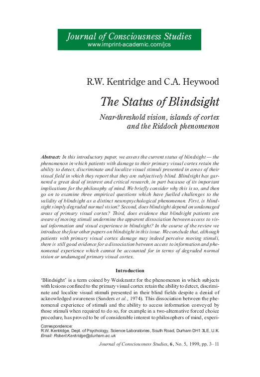 (PDF) The status of blindsight Nearthreshold vision, islands of