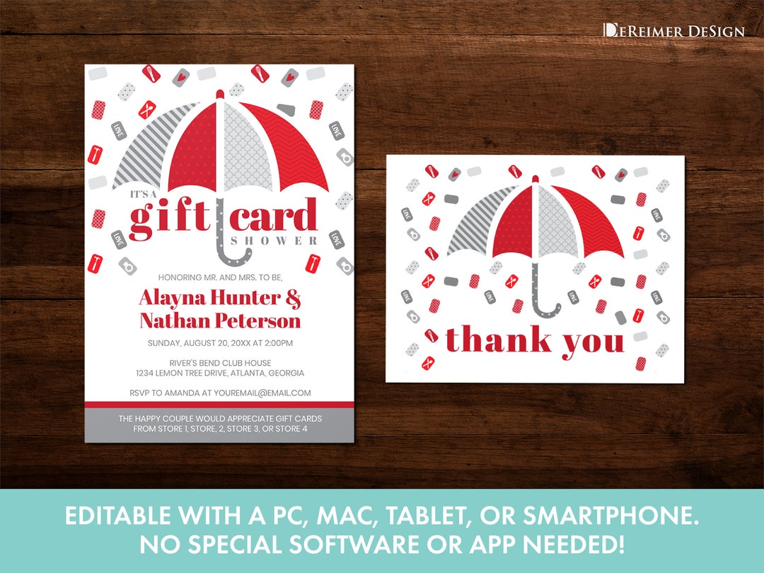 Gift Card Wedding Shower Invitation in Red and Gray Bridal Etsy Gift Card Wedding Shower Ideas A gift card makes for a great wedding shower gift, allowing newlyweds to use it for their honeymoon or save it for a milestone anniversary. Learn bridal shower basics and gifting etiquette. When they’re ready to travel, they can choose from an impressive offering of stylish beach homes, eclectic condos and chic apartments around the world. Whether you are a. Gift Card Wedding Shower Ideas.