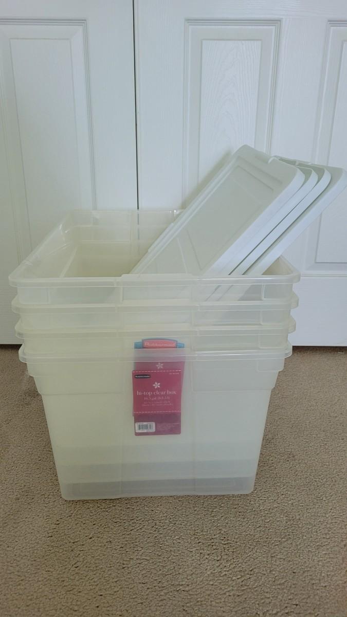 Lot 331 (4) Rubbermaid Clear Totes w/ Lids 16.5 Gallon