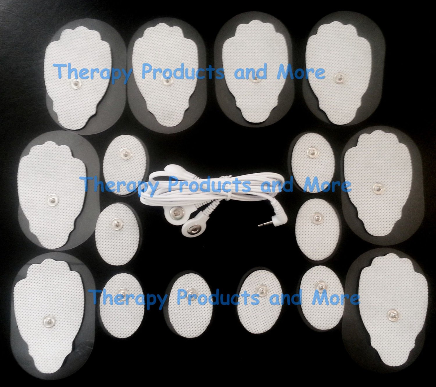 ELECTRODE LEAD CABLE (2.5mm) +PADS(8 LG + 8 SM OVAL)for TENS ELECTROTHERAPY EMS