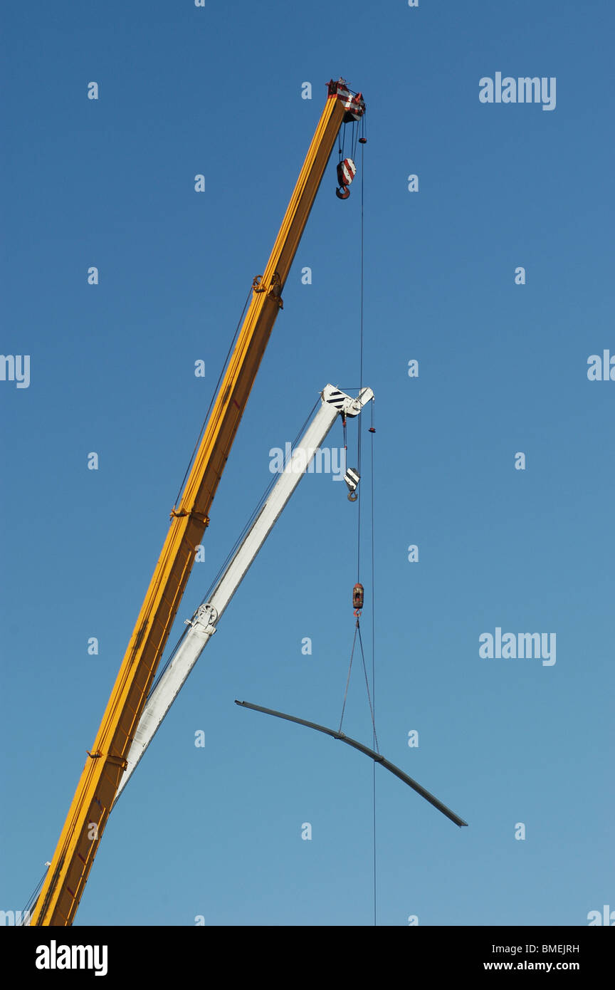 Huge crane on a building site lifting a steel girder Stock Photo Alamy