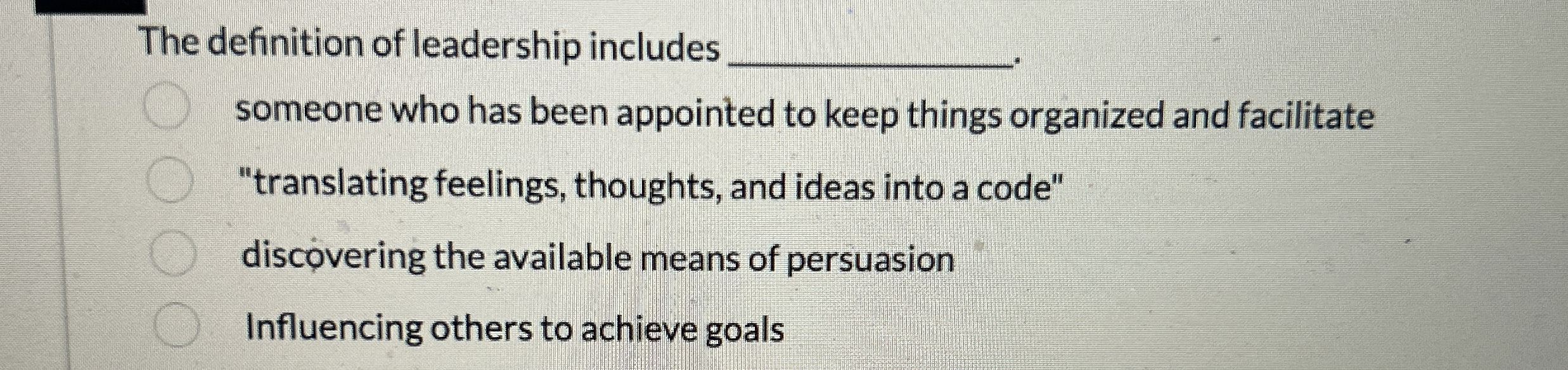 Solved The definition of leadership includessomeone who has