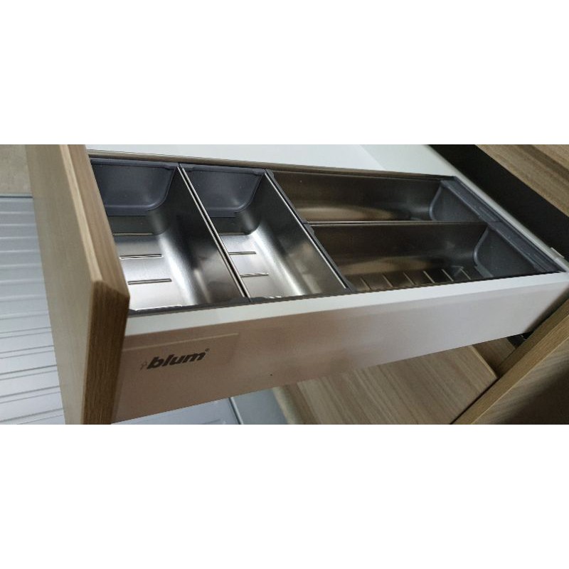 Blum ORGALINE Cutlery Tray / Drawer Organiser to Suit TANDEMBOX ANTARO Blum Orga Line Cutlery Tray Also recommended for space corner units. Organize your cutlery drawer with orgaline and design your own layout. This organization system is made to fit snugly in your drawers, meaning they won't slide around, no matter how quickly you open and close your. Made of stainless steel dividers and trays, this. Blum Orga Line Cutlery Tray.