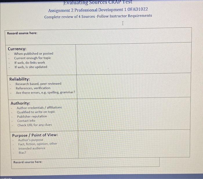 Each of the five criteria in the table below (currency, relevancy, accuracy,. Have your professors asked you to find credible, reliable information resources for a paper or project? Is it an editorial or opinion. The craap test is a starting point for evaluating online information. You can improve the quality of your assessment and boost your marks by using credible information. The next time you are looking. The craap test is a list of questions to help you evaluate the information you find. When searching for articles in databases, the craap test can be used to quickly evaluate any potential articles by looking. Apply the craap test to your sources. But how can you tell if the.