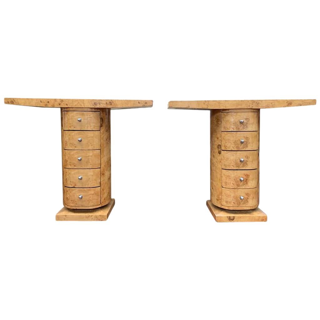 Pair of Art Deco Console Table Chest Drawers Blonde Walnut, 20th Century For Sale at 1stDibs