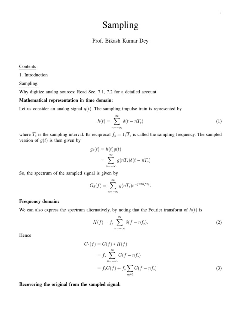 Sampling and Quantization PDF Sampling (Signal Processing
