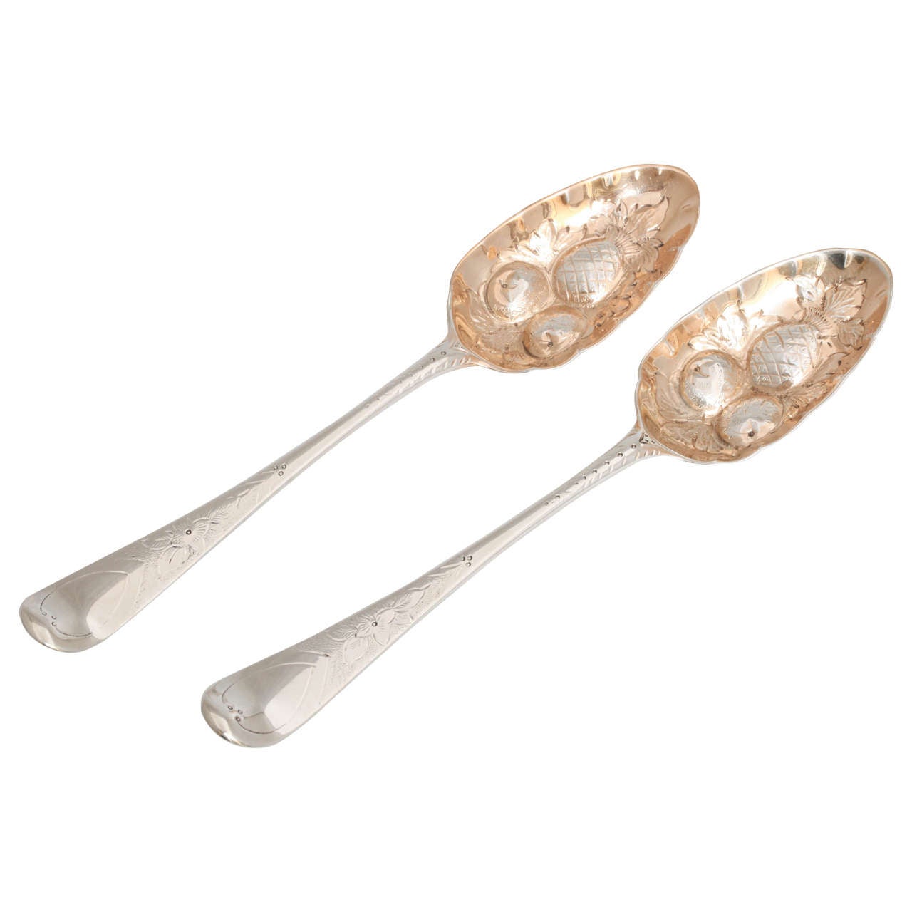 Rare Pair of Exeter Sterling Silver ParcelGilt Berry Spoons
