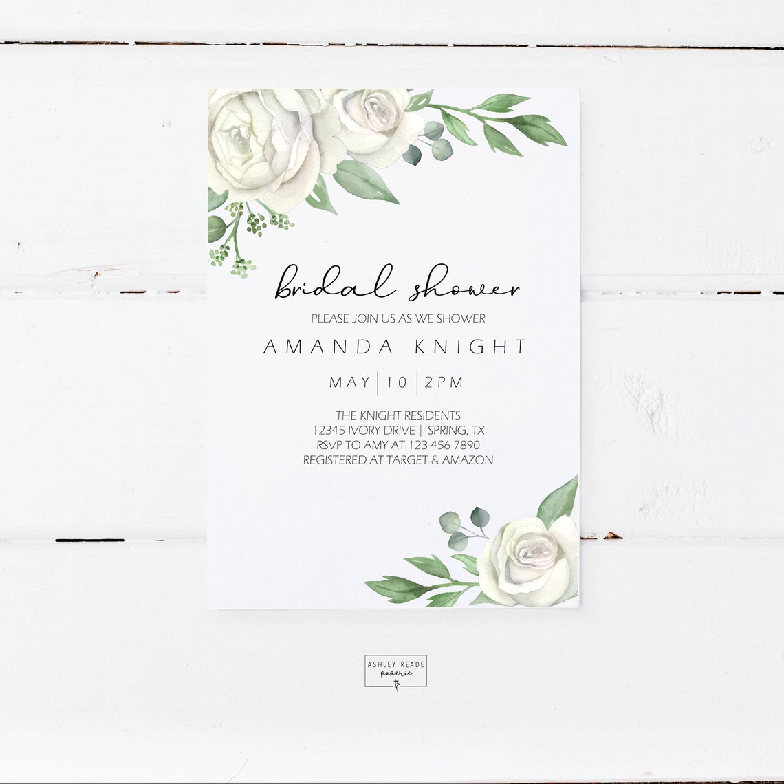 Ivory Rose Bridal Shower Invitation and Thank You Card Etsy