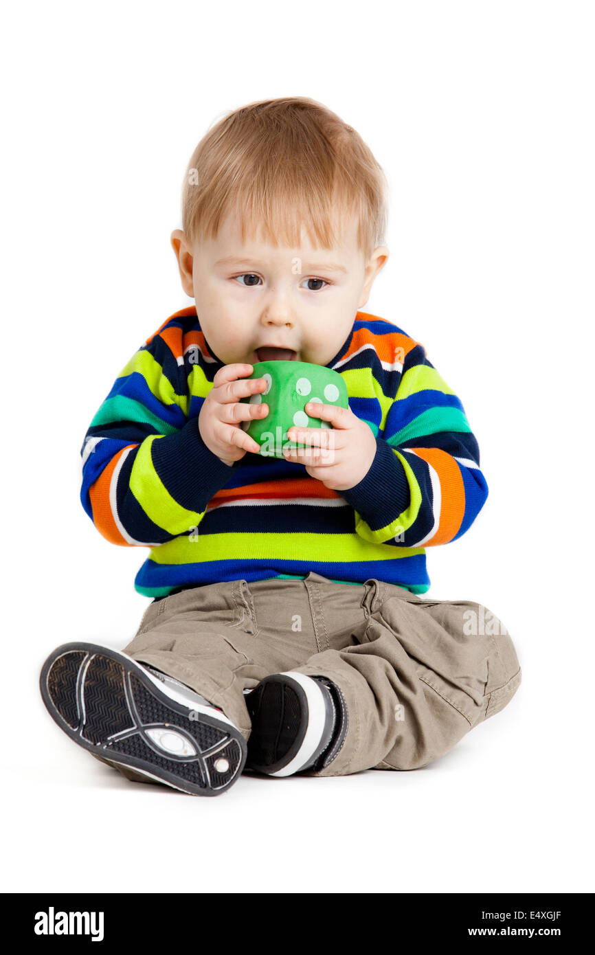 Funny little kid playing with cup toys Stock Photo Alamy