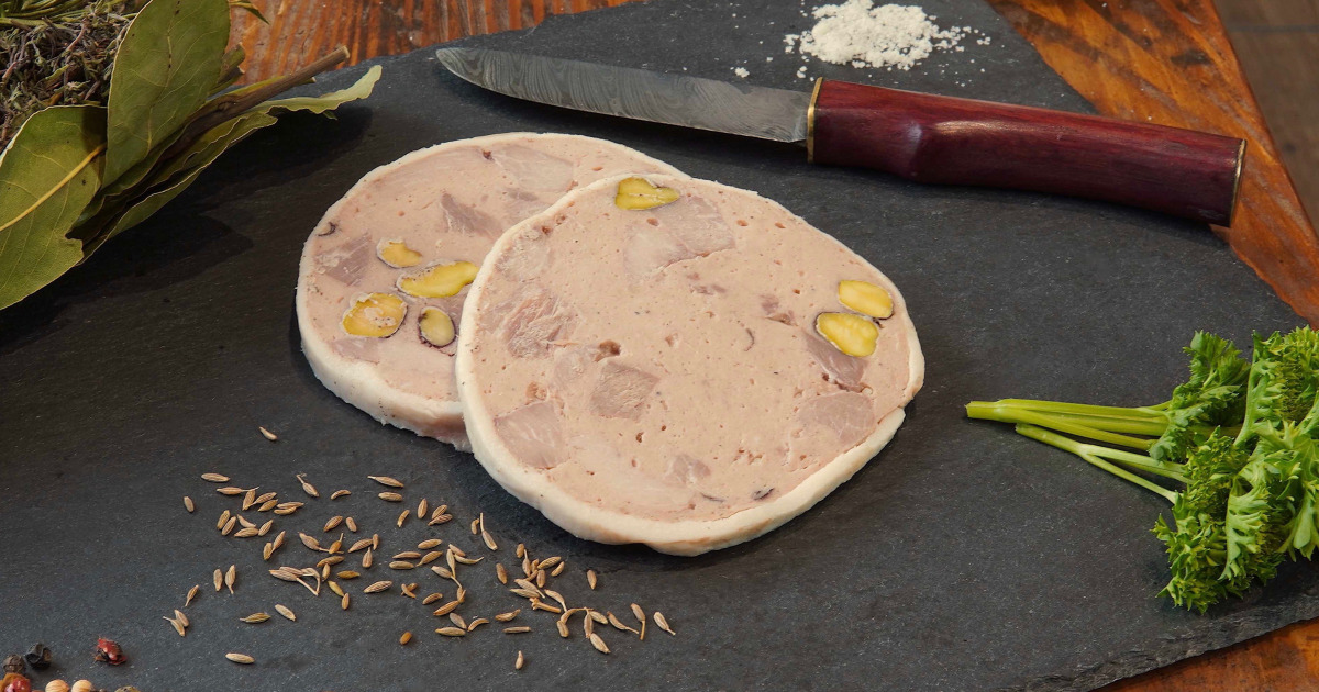 Rappel Consommateur Détail GALANTINE DE PORC PISTACHE sans marque Galantine De Porc Utiliser un chaudron de fer ou de fonte émaillée ayant. on leur ajoutait simplement des os de veau ou des pattes de porc réputés pour faire de la bonne gelée de viande. ajoutez vin blanc, sel, poivre, oignons piqués des clous de girofle, carottes en rondelles et bouquet garni. découvrez comment préparer une galantine de tête de. Galantine De Porc.