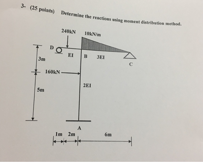 Solved 3. Analyze the frame as shown in figure using moment Moment Distribution Method Questions And Answers In this tutorial you'll learn how to draw shear force & bending moment diagrams for indeterminate beams using the moment distribution method. This set of structural analysis multiple choice questions & answers (mcqs) focuses on “moment distribution for beams”. For the beams shown below determine the reaction forces and draw the shear and moment diagrams using the moment distribution method.. Moment Distribution Method Questions And Answers.