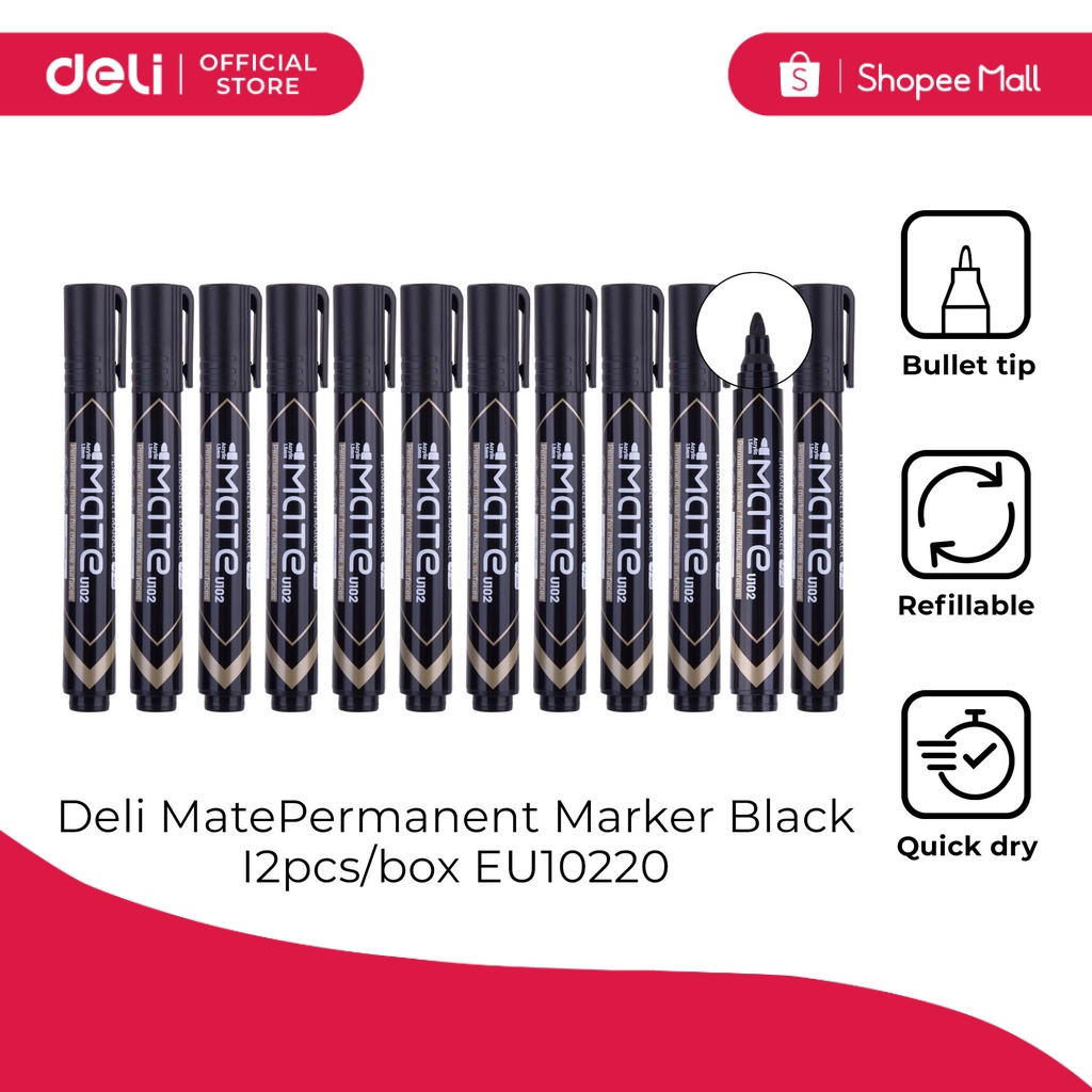Deli EU10220 Mate Permanent Marker Black (12PCS) [7711EU10220P12] Shopee Philippines