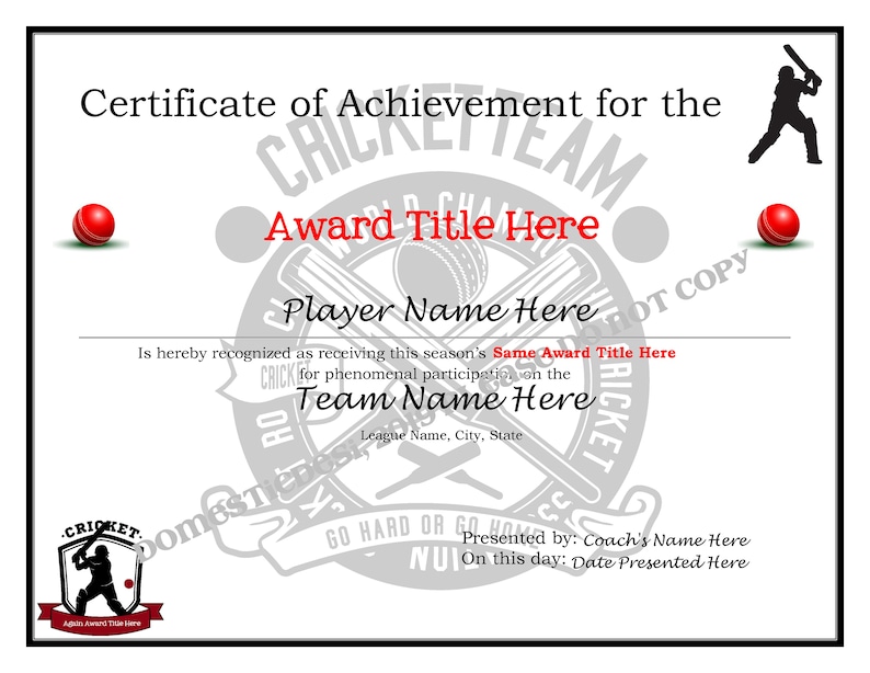 Editable Cricket Certificates Digital Downloadable and Printable & Create Your Own Template 5